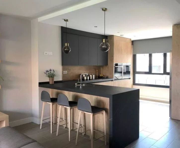 Cocina lineal con barra